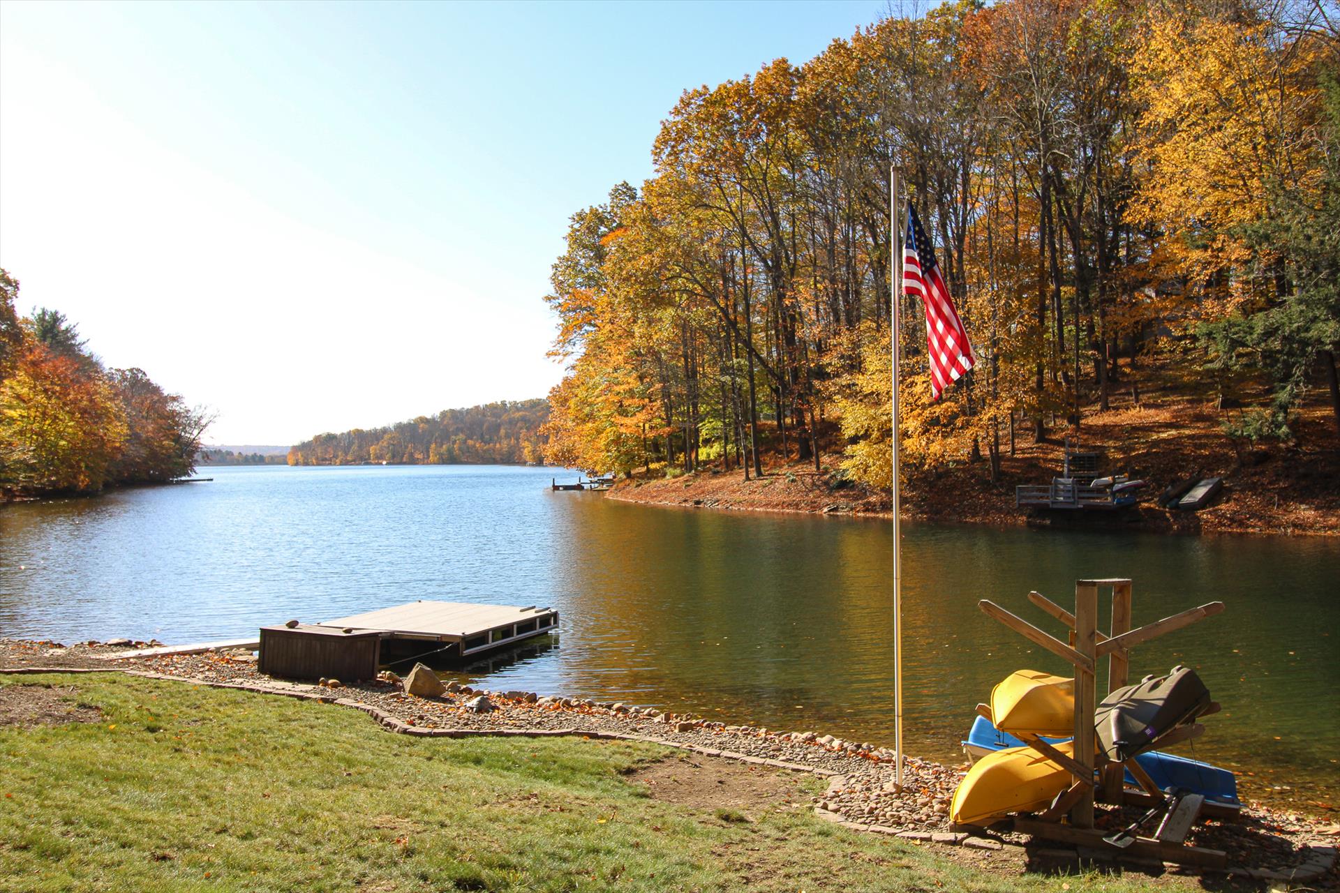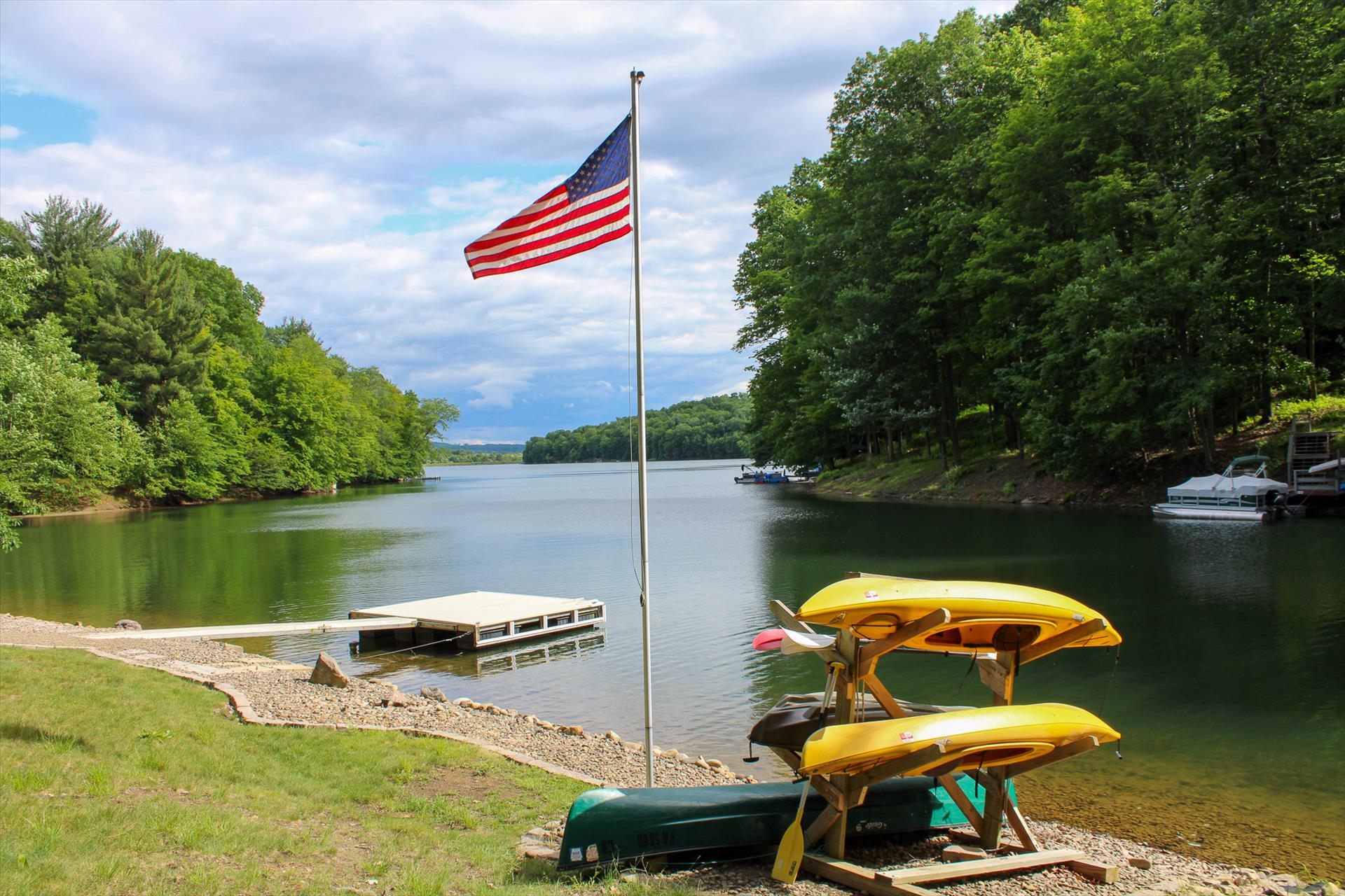 We provide for your use, 2 kayaks, 1 canoe, and 1 paddle boat. Life Jackets and fishing rods are available for your use in the storage shed. Please return all equipment where you found it. Please take care of all equipment so the next guest and also enjoy the using them.
